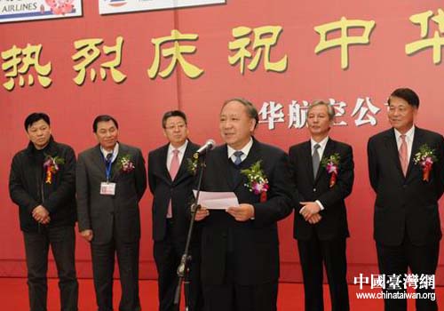 陳春林在首航儀式上致辭,他指出,剛剛過去的一年,是兩岸關系穩步推進、取得積極進展的一年。經過兩岸雙方尤其是各界同胞的共同努力,兩岸關系繼續保持和平發展的良好態勢,兩岸機制化交往穩步推進,兩岸經濟關系繼續深化,兩岸全面交流的新格局業已形成。這些成就的取得,兩岸航空公司所起的推動作用功不可沒。武漢與臺灣航線的開通,既有著歷史的必然和現實的需求,也有著強大的要素保障和資源支撐,市場開發潛力巨大。