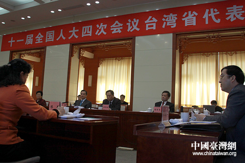 中國(guó)臺(tái)灣網(wǎng)3月8日北京消息 今天上午9時(shí),中共中央臺(tái)辦、國(guó)務(wù)院臺(tái)辦主任王毅來(lái)到十一屆全國(guó)人大四次會(huì)議臺(tái)灣代表團(tuán)駐地,參加臺(tái)籍人大代表對(duì)政府工作報(bào)告和“十二五”規(guī)劃(草案)的小組討論會(huì),并聽(tīng)取大家的意見(jiàn)、建議。(記者 王偉)