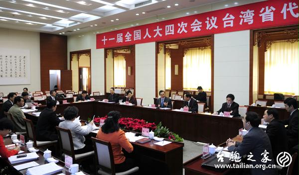 國務院臺辦主任王毅參加臺籍人大代表對政府工作報告和“十二五”規劃(草案)的討論會,并聽取大家的意見、建議。徐波/攝影