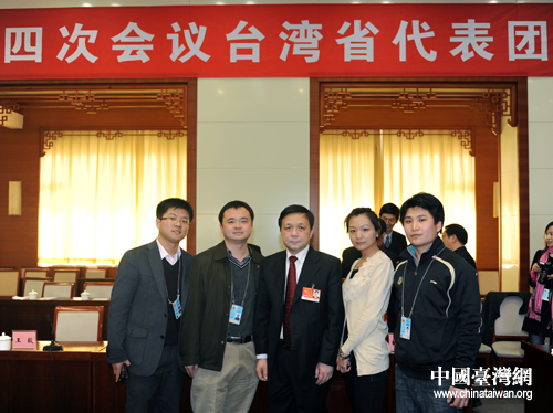 胡有清代表與中國臺灣網(wǎng)記者董潔、王偉,海峽之聲王宗磊、鄔耀華合影。