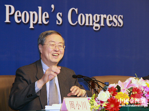 中國人民銀行行長周小川熱情回答記者提問。(中國臺灣網 王偉 攝)