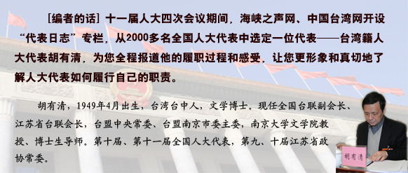 胡有清以自身為例,向記者說明了建議的形成過程。“這些建議不完全是我一個(gè)人的意見”,胡有清介紹說,全國(guó)人大每年都要組織臺(tái)灣省代表開展以涉臺(tái)工作為重點(diǎn)內(nèi)容的視察和專題調(diào)研活動(dòng),他也有機(jī)會(huì)參加江蘇省全國(guó)人大代表的視察和專題調(diào)研活動(dòng)。在他任職的臺(tái)聯(lián)和臺(tái)盟組織也會(huì)開展一些涉臺(tái)的專題調(diào)研和走訪、座談等方式更為靈活的調(diào)研活動(dòng)。在這些調(diào)研活動(dòng)中,他們接觸各個(gè)方面的臺(tái)胞、涉臺(tái)工作部門和干部群眾。有人提供線索,有人提供素材,有人提供初稿,許多建議都是在這個(gè)過程中形成的。就拿他這次提交的《關(guān)于加強(qiáng)兩岸經(jīng)濟(jì)合作的建議》,就是在多次調(diào)研基礎(chǔ)上寫成的;《關(guān)于推進(jìn)常住大陸臺(tái)胞參與公共管理的建議》則是根據(jù)近幾年多次調(diào)研中了解的情況寫成的;《關(guān)于進(jìn)一步發(fā)揮新聞媒體輿論監(jiān)督作用的建議》則直接得益于南京市臺(tái)盟與市紀(jì)委、監(jiān)察局的交流活動(dòng)。不少建議的初稿還來自臺(tái)聯(lián)、臺(tái)盟的成員。當(dāng)然,建議意見征求上來后,代表們自己還要進(jìn)行分析、選擇、提煉、加工。