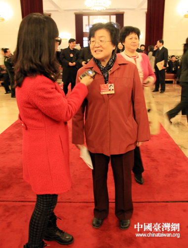 十一屆全國人大四次會議圓滿完成各項議程后,今天上午在人民大會堂閉幕。圖為臺籍代表魏麗惠在參加閉幕會時接受記者采訪。(中國臺灣網(wǎng) 王偉 攝)