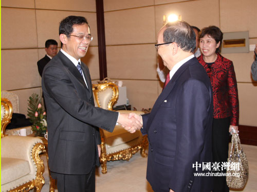 中共河南省委副書記、省政協主席、省委組織部長葉冬松在鄭州會見了前來河南參加“海峽兩岸(河南)觀光醫療產業合作論壇”的中國國民黨副主席蔣孝嚴。(圖片來源:河南省臺辦)