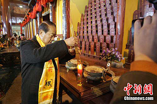 臺(tái)灣親民黨主席宋楚瑜5日在洪洞大槐樹尋根祭祖園祭拜宋氏先祖。張?jiān)?攝