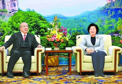 (福建)省委書(shū)記孫春蘭與中國(guó)國(guó)民黨榮譽(yù)主席吳伯雄親切會(huì)談。 記者 鄭杰 攝