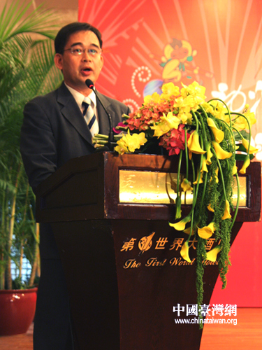 4月27日,臺灣中華動漫出版同業(yè)協(xié)進(jìn)會秘書長高世椿在第七屆中國國際動漫節(jié)新聞發(fā)布會上講話。(中國臺灣網(wǎng) 李丹 攝)