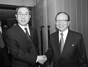 4月28日上午,(廣西)自治區主席馬飚在臺北市與中國國民黨副主席蔣孝嚴早餐敘。蔣孝嚴稱贊“廣西今年在臺參訪反響極大,成效卓著”。本報特派記者 何運斌/攝