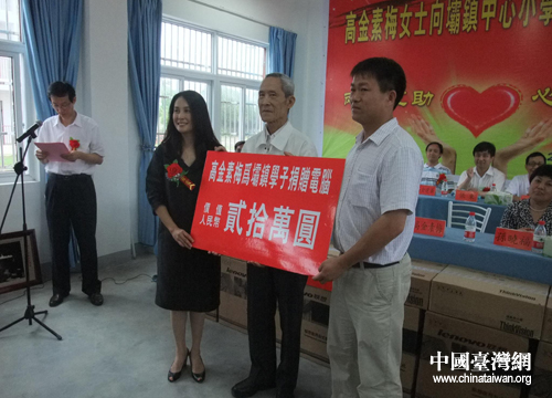 中國臺灣網6月28日巢湖消息 日前,臺灣知名人士高金素梅女士一行回到家鄉安徽省巢湖市居巢區省親,并向居巢區壩鎮鎮中心小學捐贈一批價值人民幣20萬元的電腦設備。壩鎮中心小學師生200多人參加了愛心捐贈儀式。