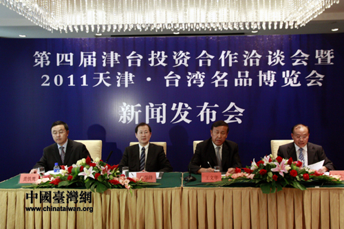 第四屆津臺投資合作洽談會暨2011天津·臺灣名品博覽會新聞發布會在津舉辦。圖為發布會現場。(中國臺灣網 馬迪 攝)