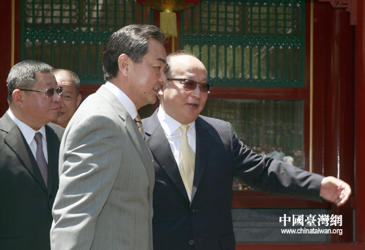 7月7日,中共中央臺辦、國務(wù)院臺辦主任王毅在北京釣魚臺國賓館會見臺中市長胡志強一行。(中國臺灣網(wǎng) 劉海偉 攝)