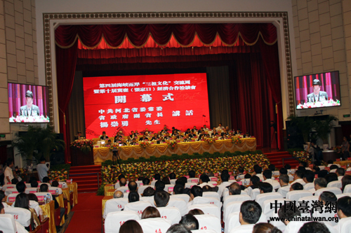 中國(guó)臺(tái)灣網(wǎng)8月8日張家口消息 8月8日下午,第四屆海峽兩岸“三祖文化”交流周暨第十屆冀臺(tái)經(jīng)濟(jì)合作洽談會(huì)在張家口舉行。中共中央臺(tái)辦、國(guó)務(wù)院臺(tái)辦主任王毅,海協(xié)會(huì)會(huì)長(zhǎng)陳云林,河北省委常委、副省長(zhǎng)楊崇勇以及中國(guó)國(guó)民黨副主席林豐正、全國(guó)臺(tái)企聯(lián)會(huì)長(zhǎng)郭山輝等1200多位兩岸各界人士出席開(kāi)幕式,河北省委副書記付志方宣布洽談會(huì)開(kāi)幕。