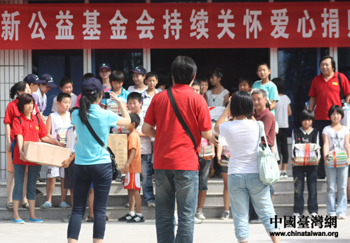 頂新公益基金會“持續關懷”愛心捐贈圖書儀式8月19日上午在天津薊縣下營鎮中營小學舉行。(中國臺灣網 王怡然 攝)