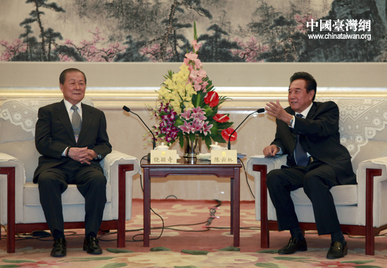 25日上午,全國政協(xié)港澳臺僑委員會主任、海峽兩岸關系協(xié)會會長陳云林在北京會見了臺灣兩岸民意代表交流基金會董事長饒穎奇為團長的臺灣民意代表交流參訪團。(中國臺灣網(wǎng) 田云鵬 攝)