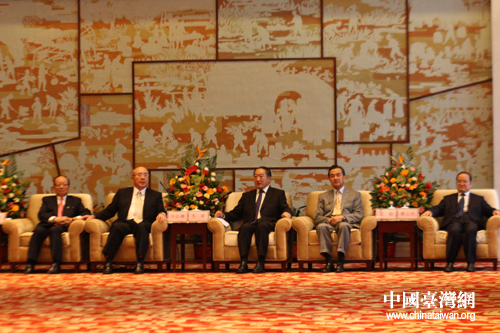 江西省委書記蘇榮與國臺辦主任王毅等會見2011“贛臺會”臺灣嘉賓。圖上從右至左依次為鹿心社、王毅、蘇榮、吳伯雄、蔣孝嚴。(中國臺灣網 邢同林 攝)