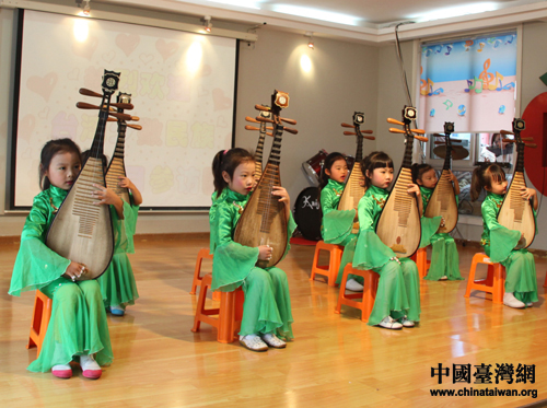 少數(shù)名族幼兒園的小朋友表演琵琶合奏《春江花月夜》。(中國臺灣網(wǎng) 芮益芳 攝)