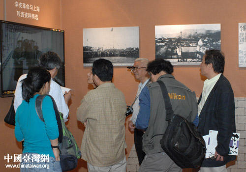 與會(huì)嘉賓參觀辛亥革命文獻(xiàn)文物展(圖片來(lái)源:上海市臺(tái)辦)