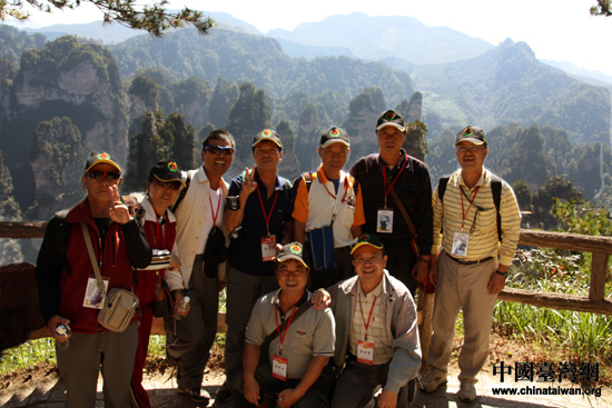 臺灣嘉賓于張家界崇山峻嶺間合影留念。(中國臺灣網 王思羽 攝)