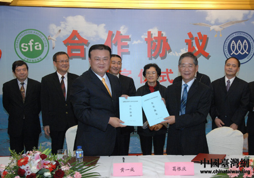 中國(guó)臺(tái)灣網(wǎng)11月4日上海消息 11月3日下午,上海市食品協(xié)會(huì)理事長(zhǎng)葛根慶與臺(tái)灣省漁會(huì)理事長(zhǎng)黃一成在上海奧林匹克俱樂部簽訂了以水產(chǎn)品貿(mào)易、漁業(yè)產(chǎn)業(yè)化及在上海構(gòu)建特色水產(chǎn)品專業(yè)交易平臺(tái)為內(nèi)容的合作協(xié)議。