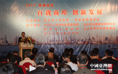 中國臺灣網12月8日汕頭消息 12月8日,兩岸知名專家學者、企業家以及來自臺灣潮汕同鄉會的嘉賓共120余人齊聚汕頭,參加2011年南澳論壇,圍繞“百載商埠 創新發展”這一主題開展交流研討,為推動汕臺兩地經濟文化交流,推進海西建設獻計獻策。