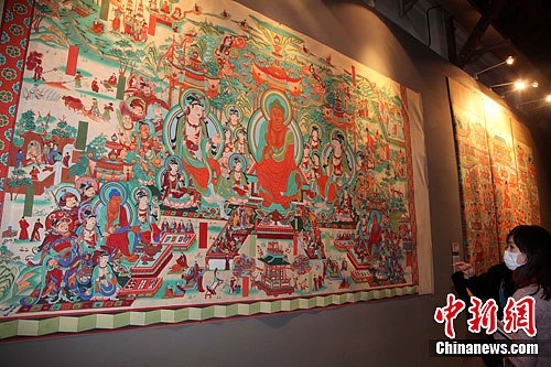 圖為大屏幕在播放《阿彌陀凈土經變圖》。董會峰攝