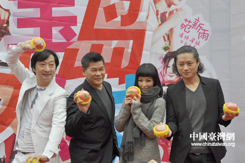 臺(tái)灣藝人澎恰恰、九孔、陳怡蓉等專程飛抵上海,為臺(tái)灣甜柿造勢(shì)。(中國(guó)臺(tái)灣網(wǎng)發(fā))