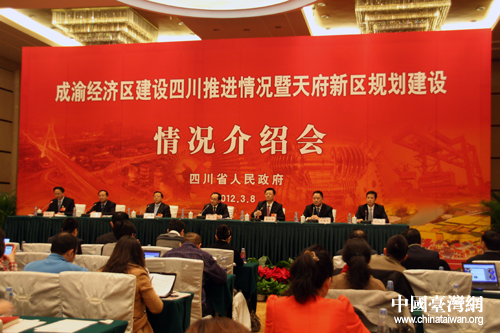 成渝經(jīng)濟區(qū)建設(shè)四川推進(jìn)情況暨天府新區(qū)規(guī)劃建設(shè)情況介紹會8日下午在北京召開。(中國臺灣網(wǎng) 楊麗 攝)