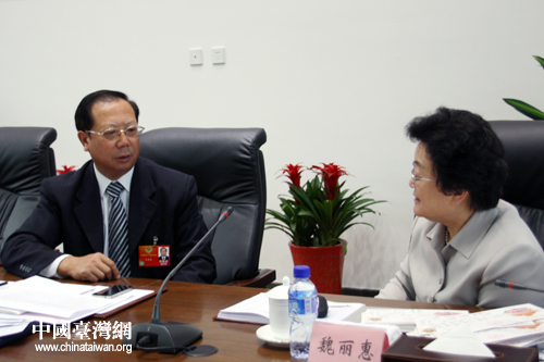 9日上午,國家旅游局副局長王志發(fā)參加了十一屆全國人大五次會議臺灣代表團的討論,圖為王志發(fā)與臺灣團代表交流問題。(中國臺灣網 楊麗 攝)