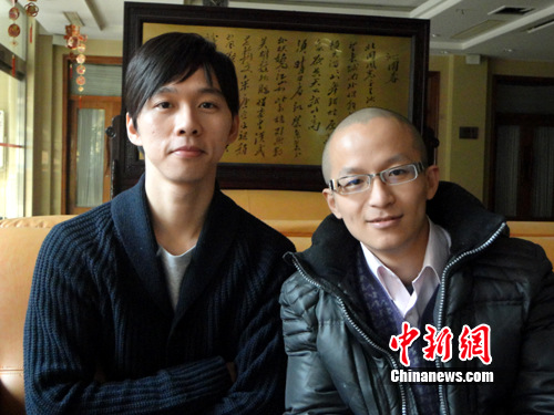 北京中醫藥大學2010屆碩士研究生蔡明亨(左)和2009屆碩士研究生鄒易良(右)。圖片來源:中國新聞網 郭思遠 攝