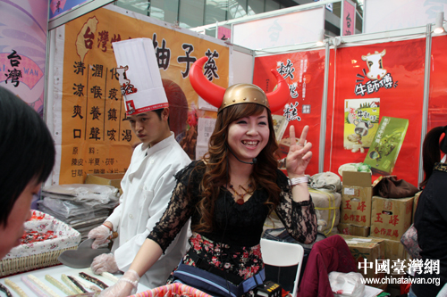 一位經營牛軋糖的攤主,頭上綁著兩只彎彎的牛角,十分活潑可愛。她一邊忙著招待前來品嘗購買的顧客,一邊告訴記者:她是第一次來參展,因為之前來過西洽會的臺商告訴她,西洽會推銷商品的效果很好。她并告訴記者,旁邊與她合租攤位的中年女士“去年就來過西洽會了”。