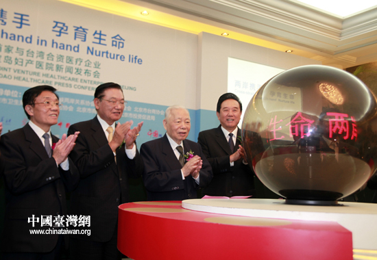 張克輝、陳云林、江丙坤與兩岸嘉賓共同啟動北京寶島婦產醫院項目(中國臺灣網 田云鵬 攝)
