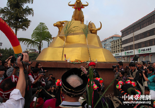兩岸三地記者聚集“祭牛魂”儀式。(云南省臺辦 蘇輝 攝)