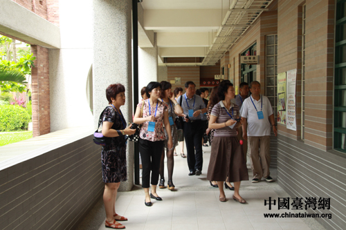 5月28日下午,“大陸優(yōu)秀教育工作者交流團(tuán)”一行參觀臺(tái)南市安平區(qū)億載小學(xué)。(中國(guó)臺(tái)灣網(wǎng) 李丹 攝)