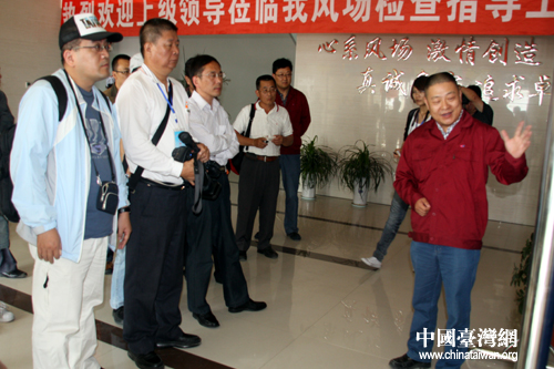 中國水電顧問集團(tuán)總經(jīng)理陳登平向兩岸媒體記者詳細(xì)介紹了瓜州縣新能源發(fā)展和風(fēng)電機(jī)組運(yùn)行以及風(fēng)能輸送方式等情況。(中國臺(tái)灣網(wǎng) 郜利敏 攝)