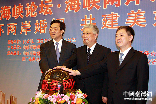 開幕式現場,民政部部長李立國,國務院臺辦副主任葉克冬,福建省副省長陳榮凱出席論壇。(中國臺灣網 董子譽 攝)