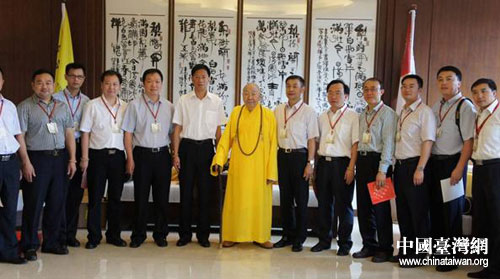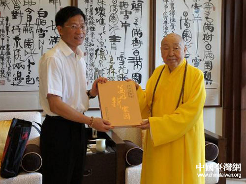 四川省委常委、副省長(zhǎng)鐘勉拜會(huì)中臺(tái)禪寺惟覺大師。圖片來源:四川省臺(tái)辦