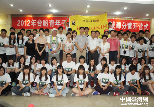 中國臺灣網(wǎng)7月8日成都消息 7月7日下午,由四川省臺聯(lián)和成都市臺聯(lián)聯(lián)合舉辦的全國臺聯(lián)2012年臺胞青年千人夏令營四川·成都分營在蓉開營,來自臺灣大學(xué)、臺灣輔仁大學(xué)、臺灣交通大學(xué)等36所高校的近70名臺灣大學(xué)生期盼已久的“熊貓故鄉(xiāng)”之行正式開啟。