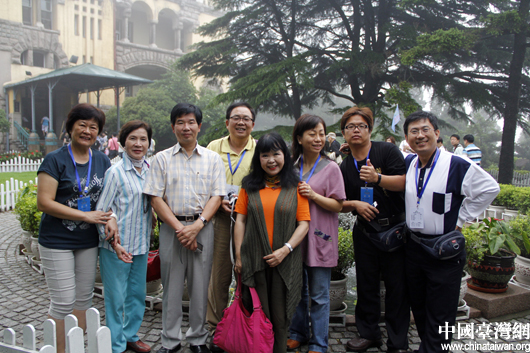 “情系齊魯——兩岸文化聯(lián)誼行”參訪嘉賓在德國總督樓舊址博物館門前合影留念。(中國臺灣網(wǎng) 芮益芳 攝)