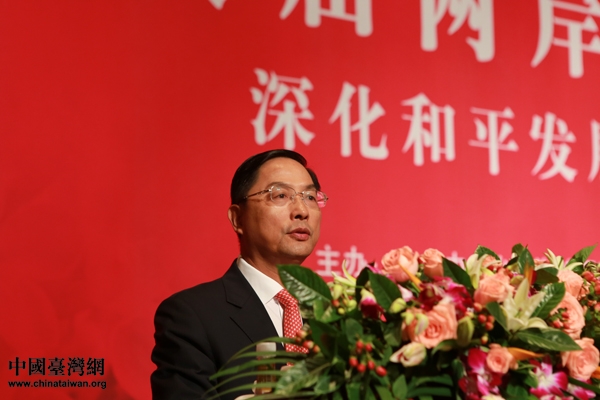 圖:中共中央臺辦特邀嘉賓蔣耀平在第八屆兩岸經(jīng)貿(mào)文化論壇上作以《四年來兩岸經(jīng)濟關(guān)系的回顧及對未來的展望》為題的主題演講。(中國臺灣網(wǎng) 于斯文 攝)
