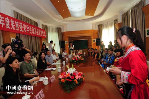 中國臺(tái)灣網(wǎng)8月10日成都消息 8月7日至10日,臺(tái)灣民意代表高金素梅率臺(tái)灣少數(shù)民族參訪團(tuán)赴四川參加“2012年四川世界自然文化遺產(chǎn)之旅”活動(dòng),并在成都大熊貓繁育研究基地向其資助的20名北川羌族受災(zāi)學(xué)生發(fā)放2012年度助養(yǎng)金74000元,這是她自2008年以來持續(xù)第5年資助羌族受災(zāi)學(xué)生,迄今累計(jì)金額達(dá)34萬余元人民幣。