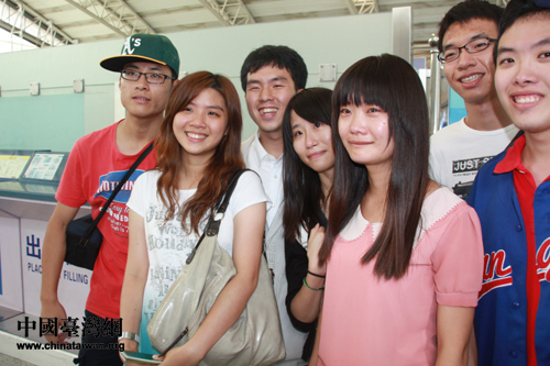 中國臺(tái)灣網(wǎng)8月17日西安消息 8月16日下午,臺(tái)灣青年學(xué)生交流團(tuán)正式結(jié)束了此次“北京—西安”之行,在西安機(jī)場搭乘飛機(jī)返回臺(tái)北。10天的相處,12名臺(tái)灣大學(xué)生與5名北京大學(xué)生志愿者不僅把足跡永遠(yuǎn)的留在了長城、故宮、天壇、兵馬俑、大雁塔、華清池、漢陽陵等地,彼此之間也建立了深厚的感情。機(jī)場一別,許多同學(xué)都掉下了不舍的淚水,兩岸學(xué)子相互擁抱、安慰,承諾未來還要再相聚。