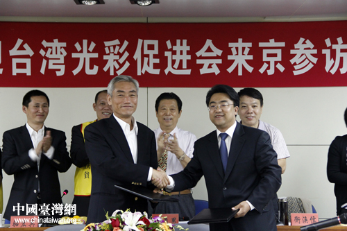 中國臺灣網24日北京消息 24日上午,北京市光彩事業促進會與臺灣光彩促進會在北京工商聯大廈簽署了兩地光彩事業友好對接合作協議。北京市光彩事業促進會理事、企業家代表,與來自臺灣光彩促進會的代表,共計50余人共同出席了此次活動。