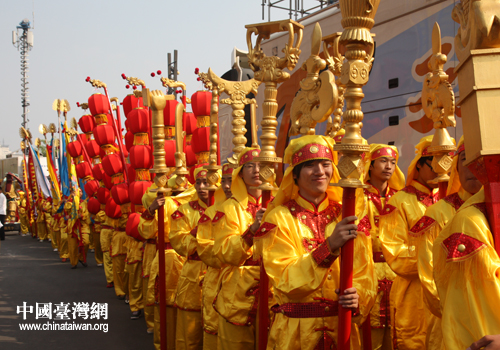 開幕式后,天津、臺灣皇會15道會600余人的表演隊伍進行全長1600米的踩街表演,使兩岸嘉賓和津門百姓充分感受皇會踩街的恢宏氣勢和“皇家”氣派及陣容,讓人們共同體會媽祖文化的博大精深和獨有的人文魅力。(中國臺灣網記者 郭慶娜)
