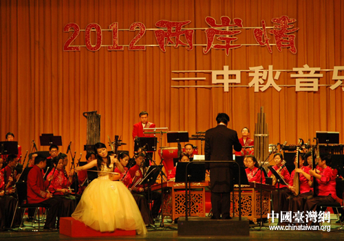 中國臺灣網9月29日合肥消息 9月28日晚,“2012兩岸情——中秋音樂會暨十周年慶典”在安徽藝術劇場舉行,來自臺北、高雄、臺南、臺中的二十多位臺灣音樂人和安徽省民族管弦樂團、安徽交響樂團的音樂人同臺演出,為合肥觀眾獻上了一臺精彩的中秋音樂會。