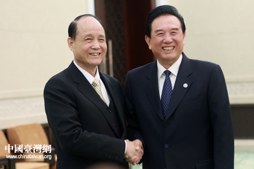 16日晚,海協會會長陳云林(右)會見了首次來大陸的臺灣海基會新任董事長林中森一行。(中國臺灣網 陳佳慧 攝)