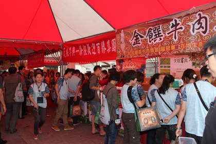 今天抵達金門的大陸游客團參加旅行社安排的“活動市集”,金門特產貢糖及鳳梨酥等名產,幾乎瞬間都被秒殺。(中國臺灣網 焦源源)