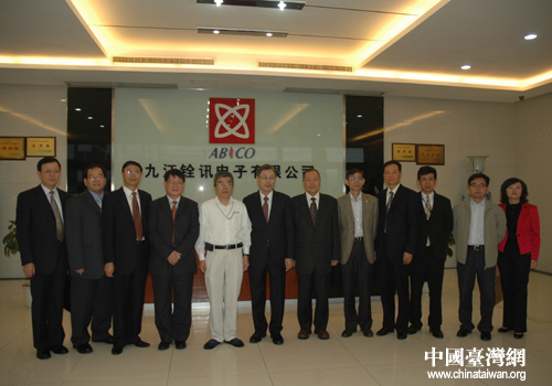 臺灣海基會副董事長高孔廉一行考察臺企銓訊電子時合影留念。(圖片來源:九江市臺辦)
