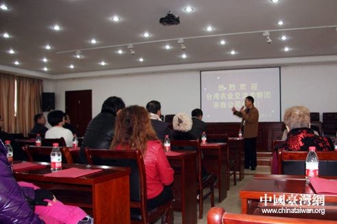 湖北同星農業有限公司副總裁劉成做專題報告,與臺灣農業專家進行技術交流。(中國臺灣網 黃艷艷 攝)