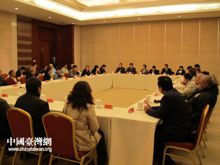 中國臺灣網12月11日天津消息 12月7日,在天津迎賓館舉辦了一場別開生面的座談會。中臺辦、國臺辦交流局局長程金中等一行,與正在天津參訪的臺灣鄉鎮市民代表會聯合總會的鄉親們圍坐一起,就如何做好基層服務工作以及深化兩岸基層交流等議題專門聽取參訪團成員的意見和建議。會場氣氛融洽熱烈,短短一小時內,先后有15人次發言。一位原住民團員談及大陸多年來對臺灣原住民的關愛時,感動得潸然淚下。