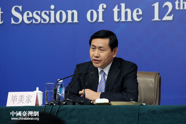 農(nóng)業(yè)部總經(jīng)濟師、辦公廳主任、新聞發(fā)言人畢美家11日下午在北京表示,臺灣投資大陸農(nóng)業(yè)呈現(xiàn)兩個非常鮮明的特點,未來,農(nóng)業(yè)部將加強三方面工作以深入推進兩岸農(nóng)業(yè)合作。(中國臺灣網(wǎng) 楊麗 攝)